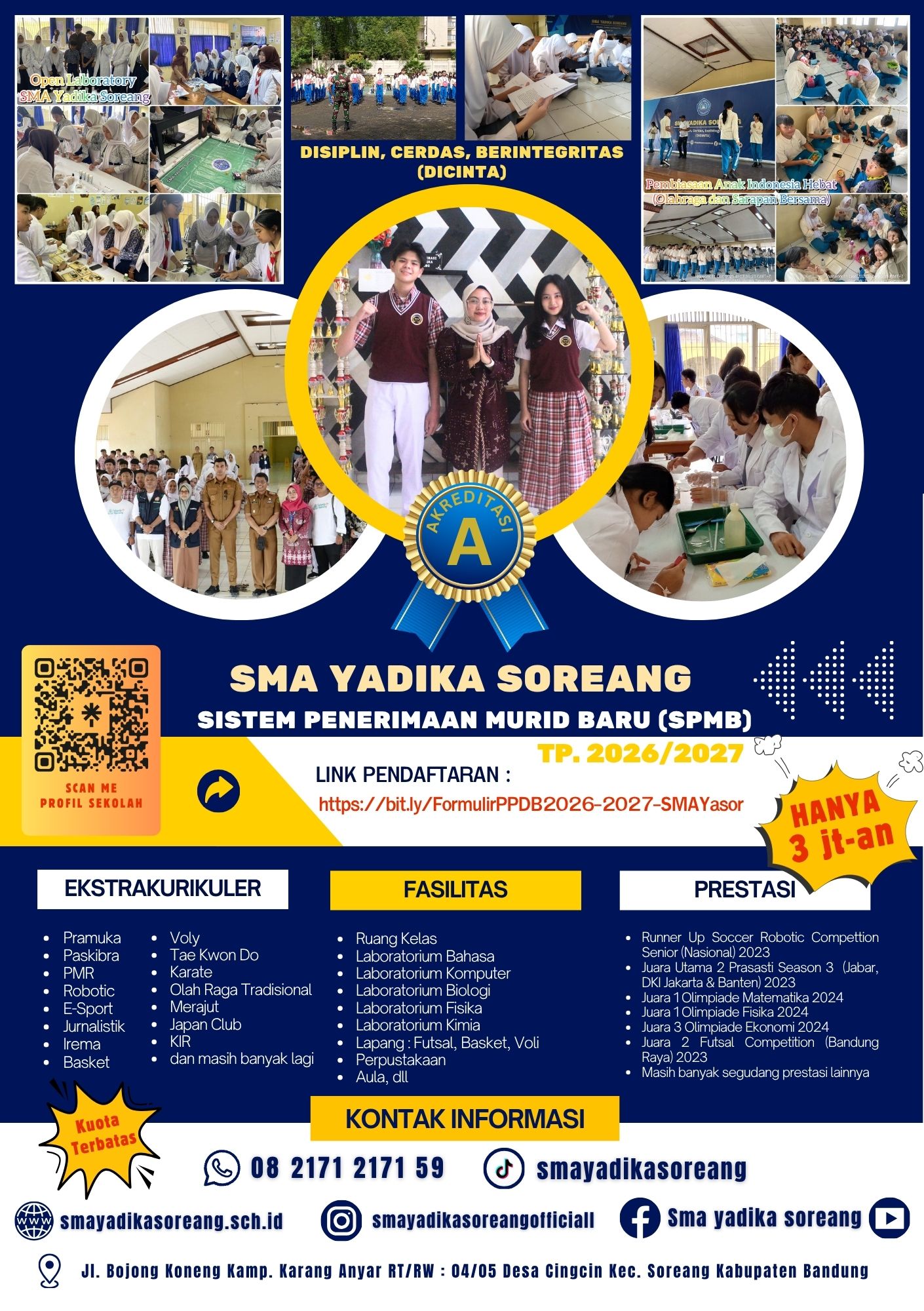 Pendaftaran SPMB SMA Yadika Soreang TP. 2026/2027 masih dibuka